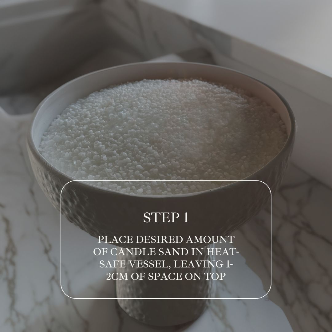 A: Our Sand Candle is unscented, providing a pure, natural experience. If you prefer a fragrant ambiance, you can effortlessly add one of our candle fragrances to the sand, roughly 1-2cm near the place you want to place your wick, before lighting it.
